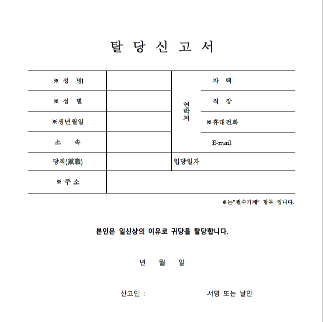 모든 탈당은 수기로 작성한 신청서를 제출해야만 유효합니다.