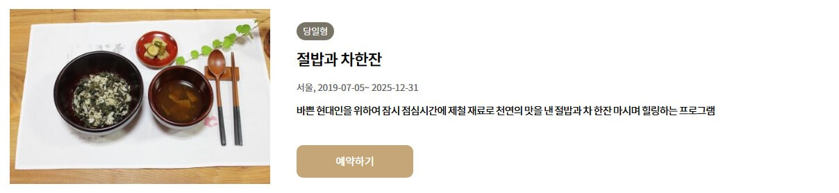 평소 '쉼'이 간절했던 분이라면, 이곳에서의 1박 2일은 마음의 숨통을 틔워주는 깊은 힐링의 시간이 될 거예요. 스님과의 차담, 울창한 우면산 산책, 그리고 절밥 한 끼의 온기까지. 몸과 마음이 따뜻해지는 여정 속에서, 놓치고 있던 '나'를 다시 만나는 경험을 하게 될지도 모릅니다.