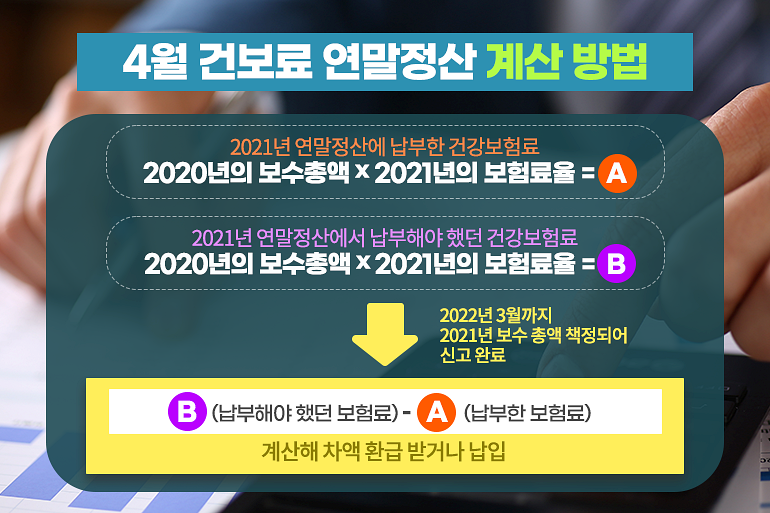 그리고 이듬해 4월, 국세청 연말정산 결과를 토대로 실제 소득에 맞춰 보험료를 정산하게 되는 것이죠.